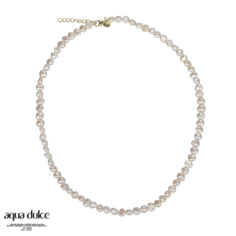 42 + 3 CM. STRAWBERRY QUARTZ. GOLDEN SAND & SUNSTONE. FRESH WATER PEARLS