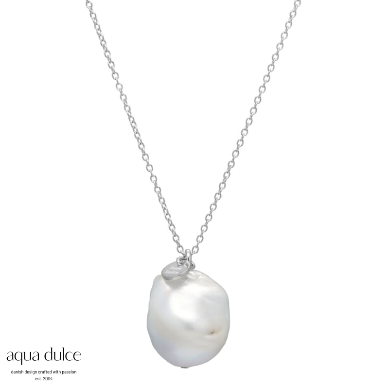 80 cm. halskæde med 19 mm. hvid, Barok ferskvandsperle.