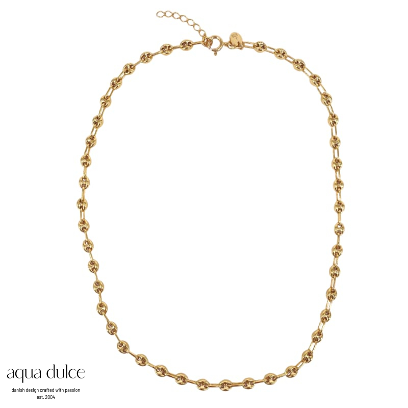 BIG COFFEY NECKLACE | GOLDEN Aqua Dulce 4911 Halskæde med store coffee led & ovale link imellem. På lager 1.599,00 DKK Vis produkt