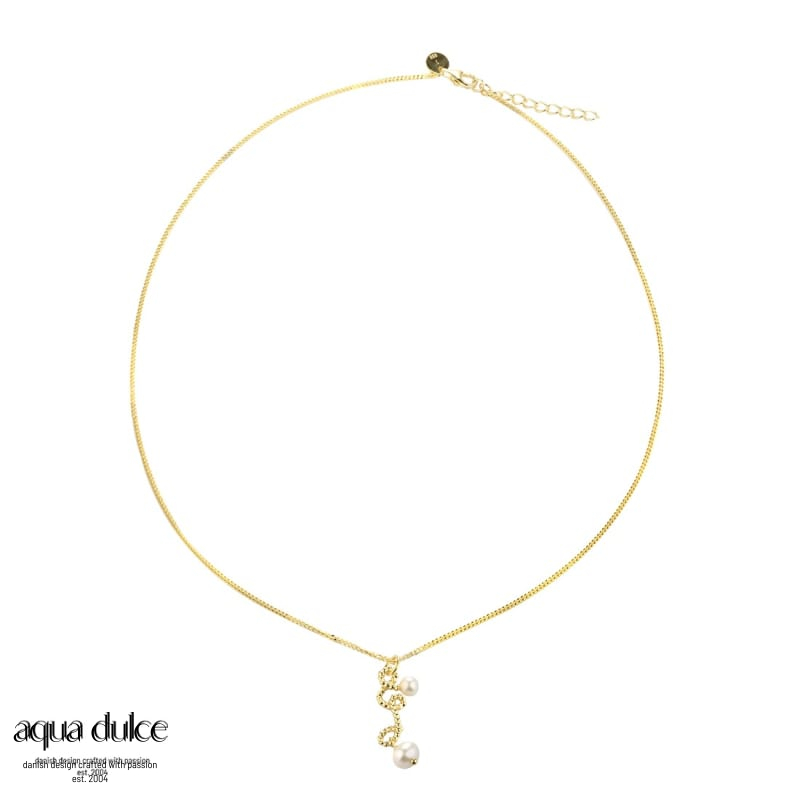 Halskæde med krølle & hvide ferskvandsperler.