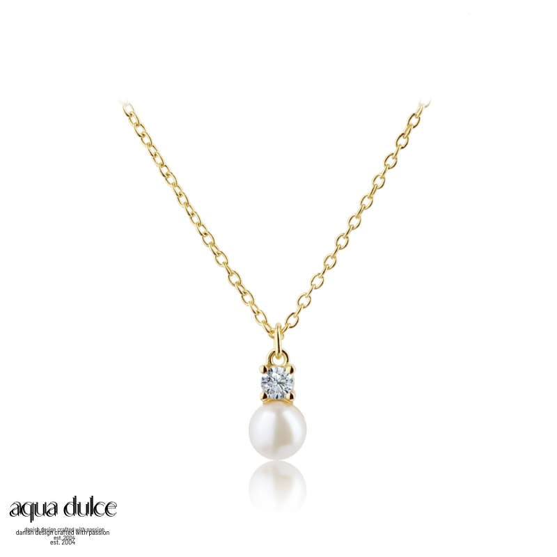 Halskæde med 6 mm. ferskvandsperle vedhæng med klar zirkonia.