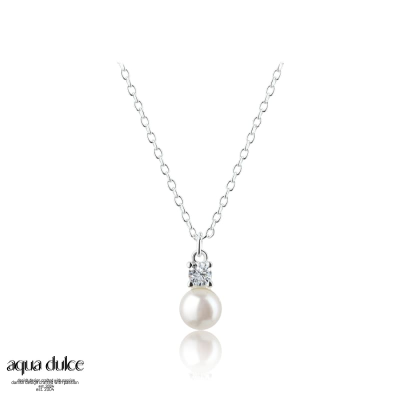 17 + 3 CM. AQUAMARINE, FRESH WATER PEARLS & ZIRKONIA