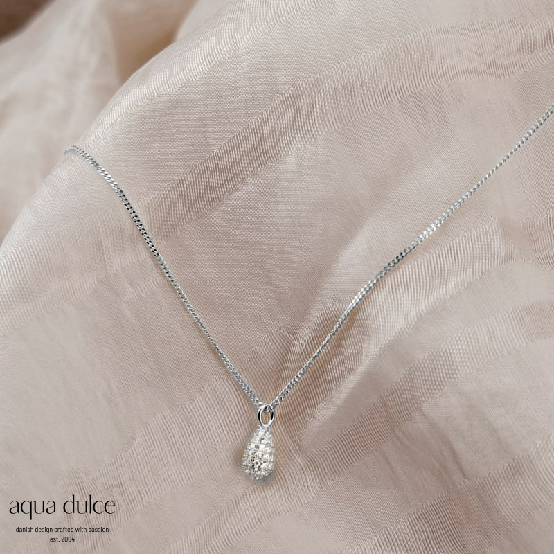 Halskæde med lille pavé dråbe med klare zirkonia
