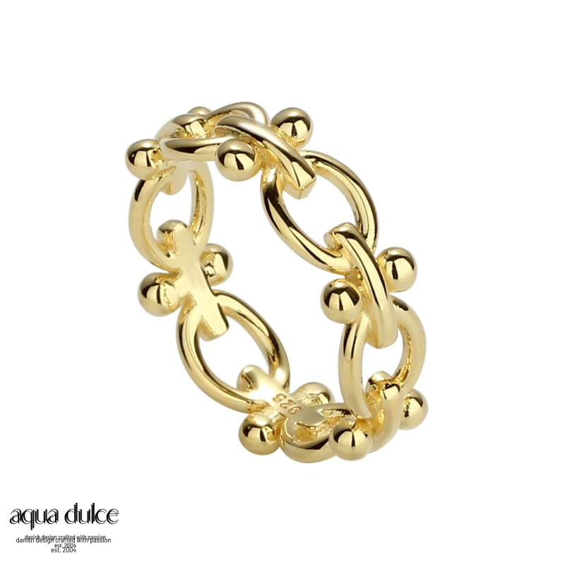 Fingerring i forgyldt sterling sølv med florre ovale led & kugler.