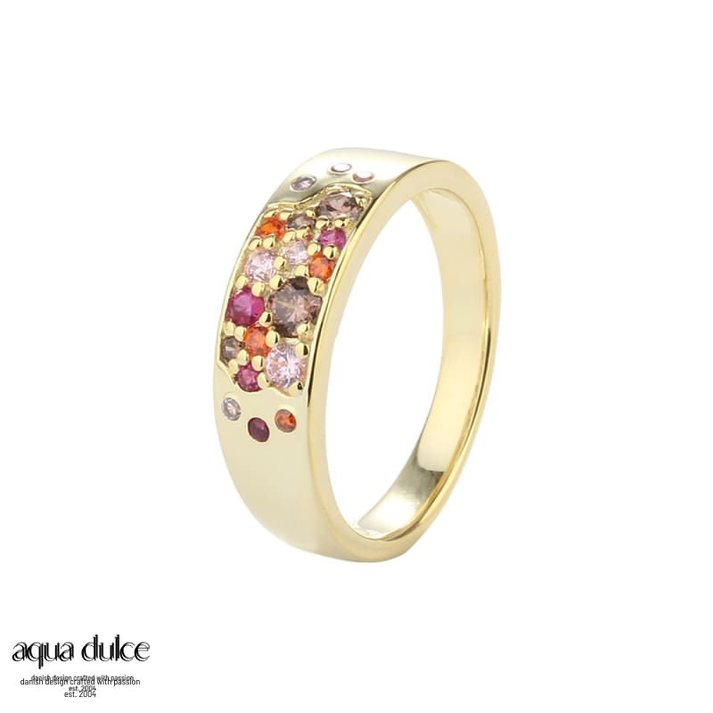 Fingerring med pink, smokey, orange & rosa zirkonia.