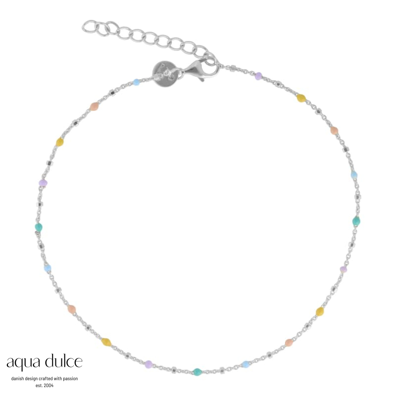 Becca er en smuk ankelkæde med både pastelfarvede og regulære dots, som du kender dem fra vores basiskollektion af 'Dot' armbånd. Spice dit sommeroutfit up med én, eller flere ankelkæder