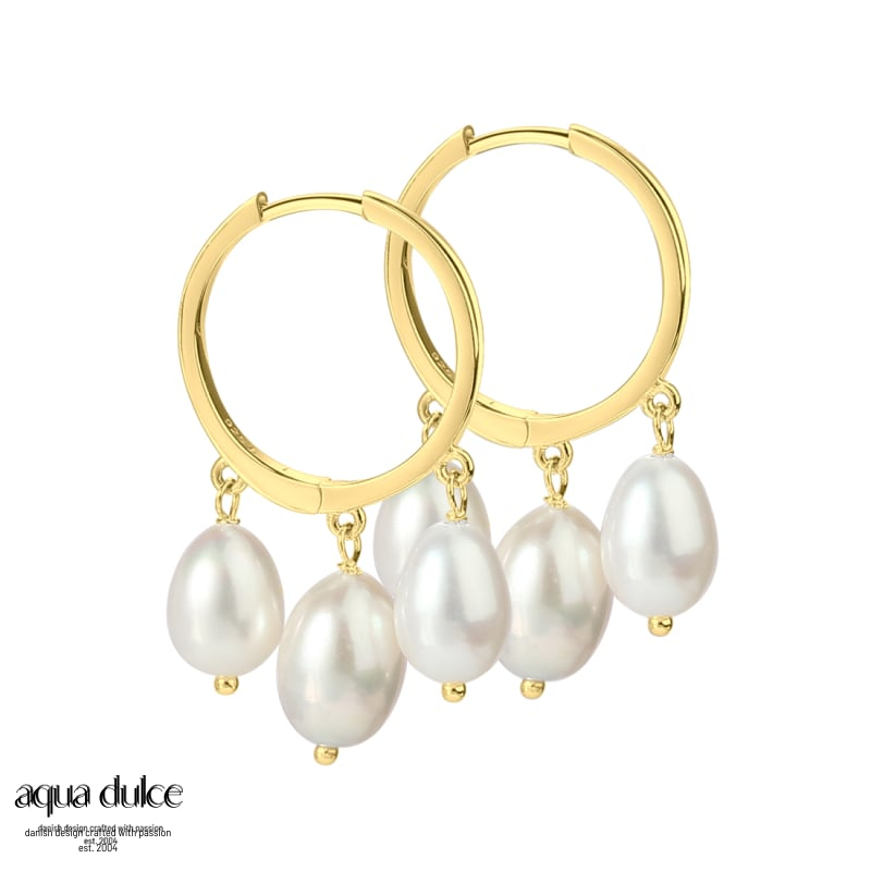 DIVINE, 20 mm. hoops i forgyldt sterling sølv med 3 flotte ovale ferskvandsperler