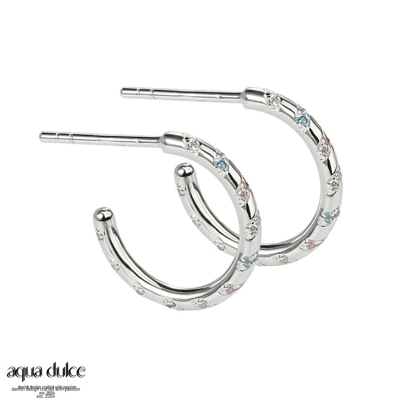 25 mm. hoops med snoet zirkonia i pastel farver.