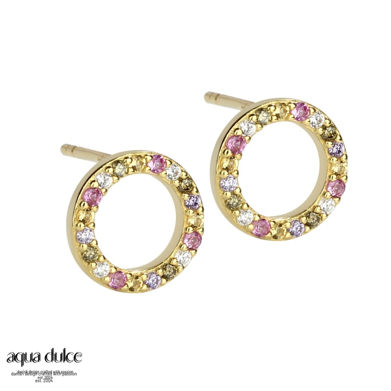 PRETTY PASTEL MIX, Ørestikker i forgyldt sterling sølv med ruflet vedhæng, zirkonia, halvædelste Aqua Dulce 5257 På lager 349,00 DKK Vis produkt