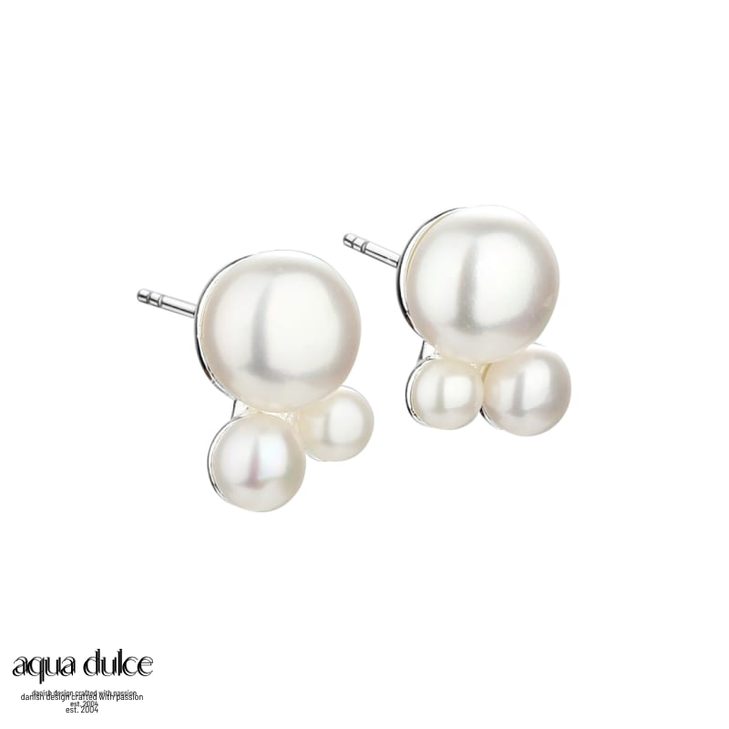 Ørestikker med 3 hvide ferskvandsperler i str. 3,4 & 7 mm.