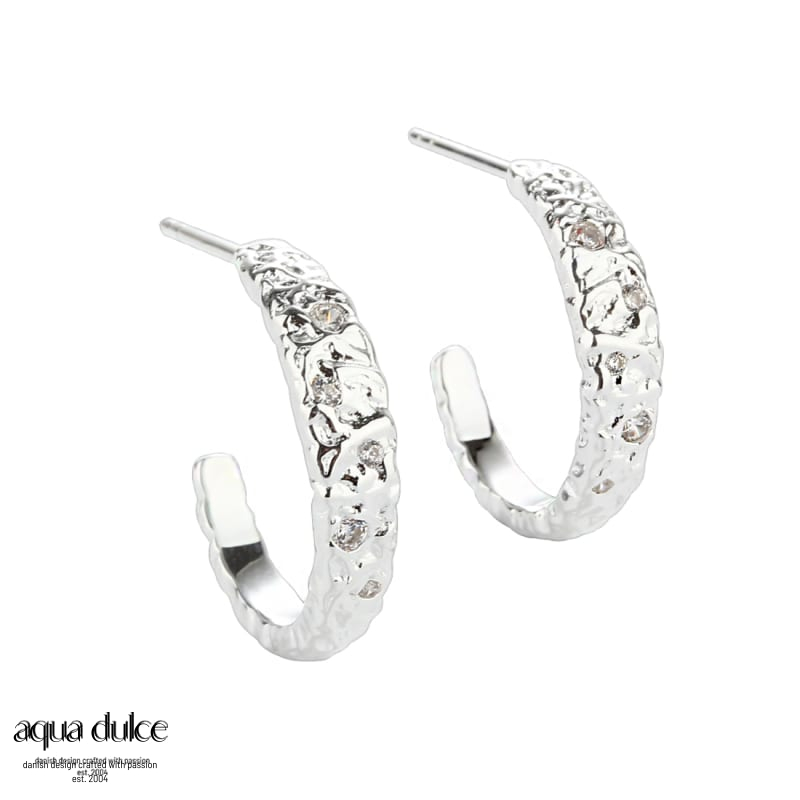 18 mm. creoler med stik , ruflet overflade & fine klare zirkonia.