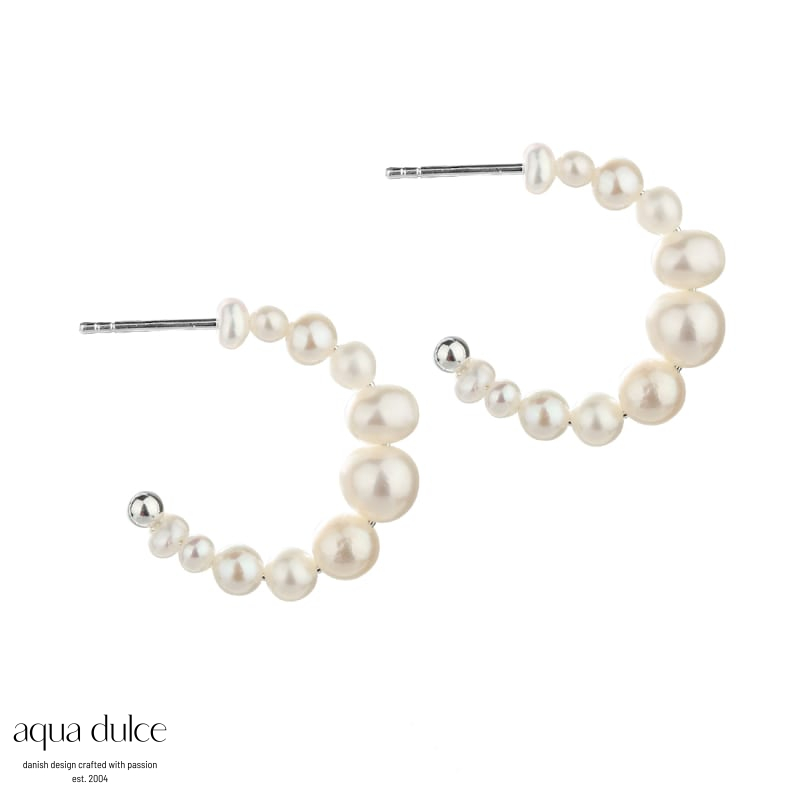 DARLING PEARL BIG, 13 mm. klik creoler i forgyldt sterling sølv med klare zirkonia & 12 mm. ferskva