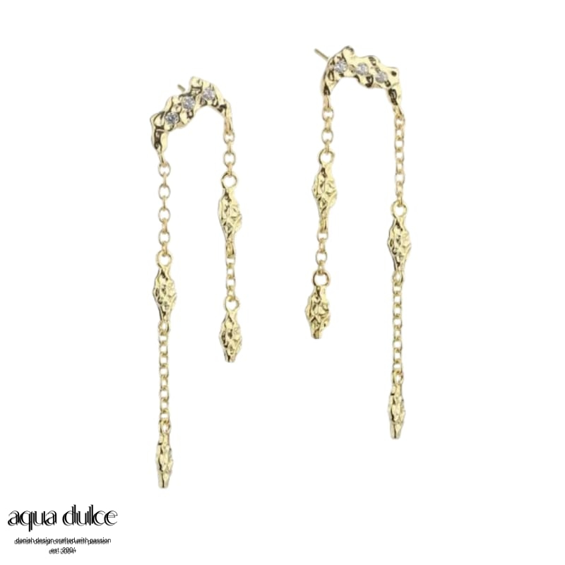 PARTY, Ørestikker i forgyldt sterling søllv med 2 rækker af flotte zirkonia i becel fatning.