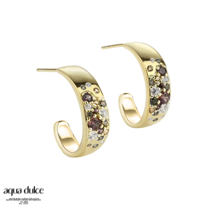 15 mm. hoops med oliven, smokey & topaz zirkonia