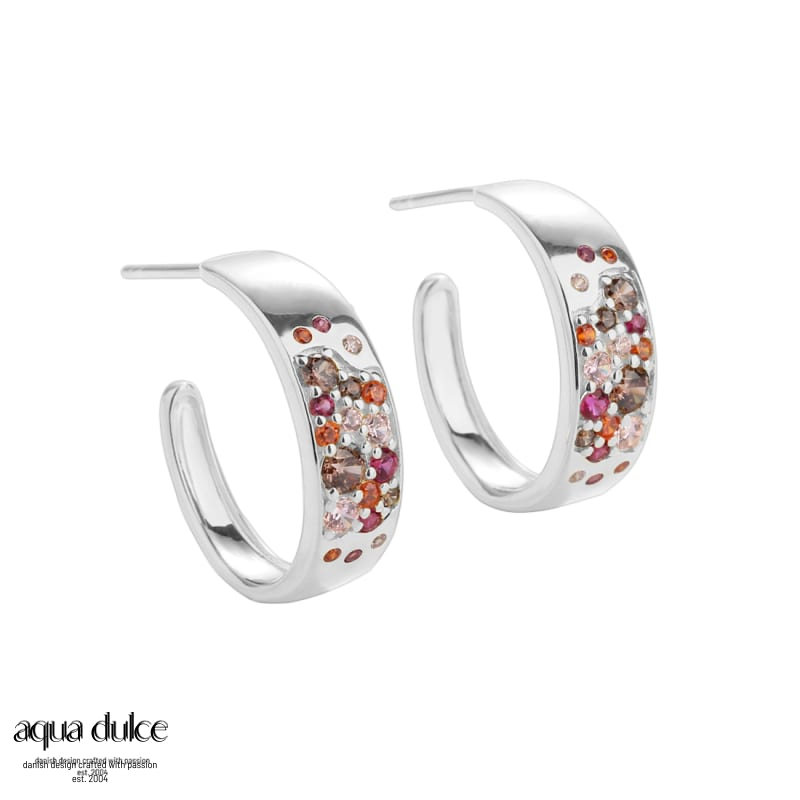 PINK STARDUST SMALL HOOP, 15 mm. hoops i sterling sølv med pink, smokey, orange & rosa zirkonia Aqua Dulce 5214 15 mm. På lager 60.00 € Vis produkt