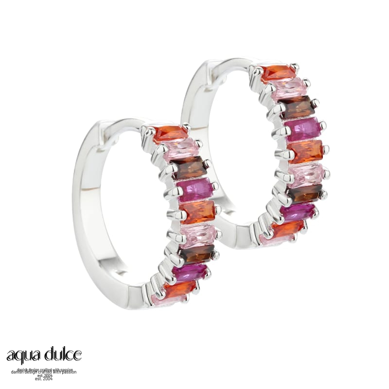 Vigga - 15 mm. creoler i sterling sølv med lilla, røg, sorte, champagne & oliven zirkonia