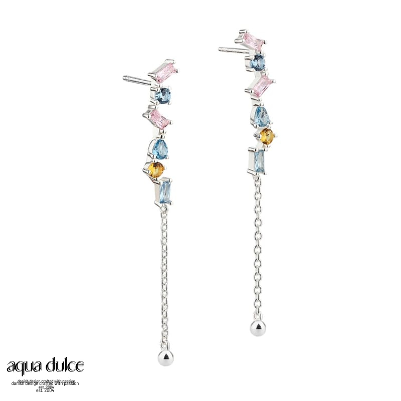 Ørestikker med rosa, blå og gule zirkonia & baguettes.