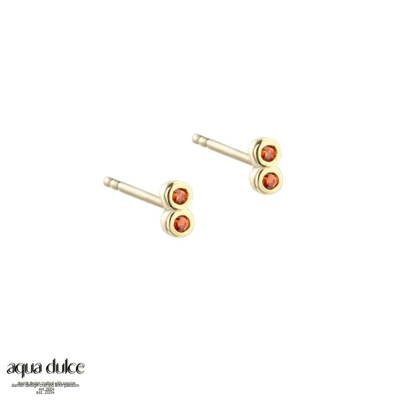 TINY ORANGE, Ørestikker i forgyldt sterling sølv med 2 små orange zirkonia.