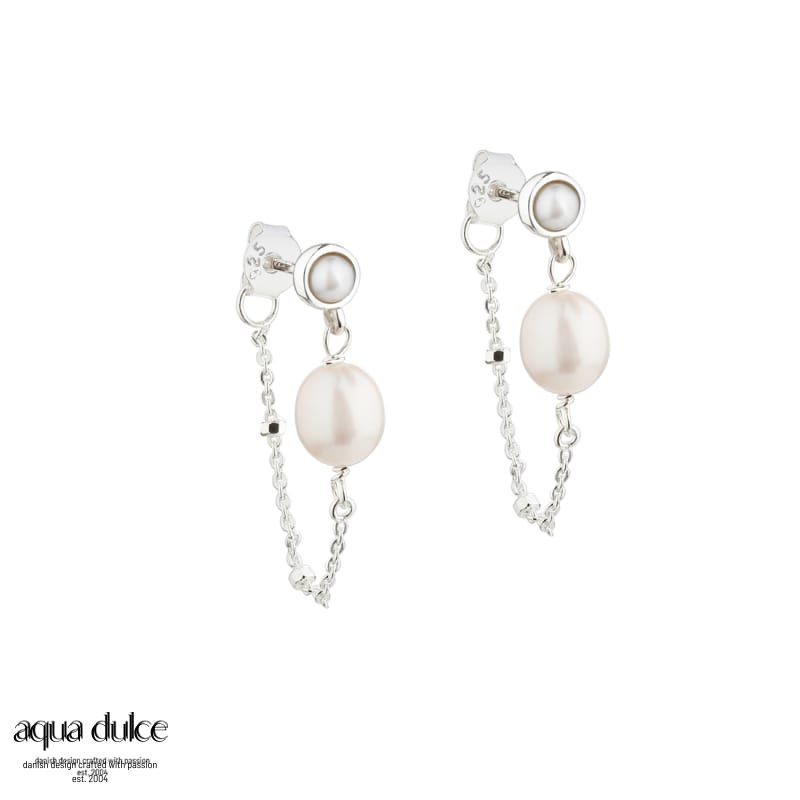 Ørestik med hvide ferskvandsperler & dot kæde.