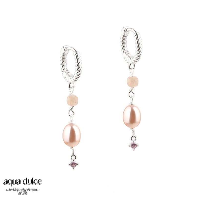 12 mm. snoet creoler med vedhæng af rosa ferskvandsperler, sunstone & rosa zirkonia.