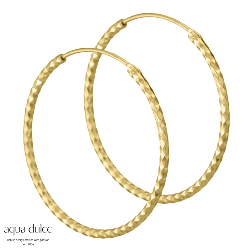Donna, 30 mm. hoops i forgyldt sterling sølv med diamond cut mønster