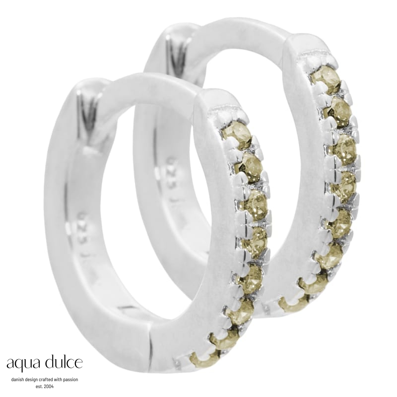 *Ronja - 10 mm. creoler i sterling sølv med oliven grøn zirkonia.