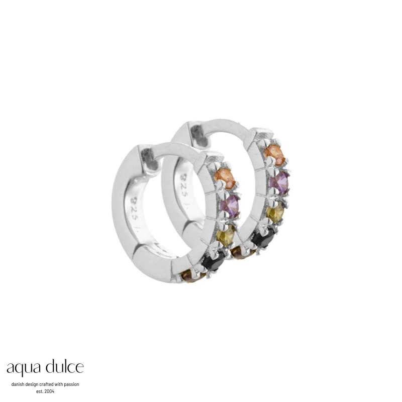 Vigga - 10,7 mm. creoler i sterling sølv med lilla, røg, sorte, champagne & oliven zirkonia