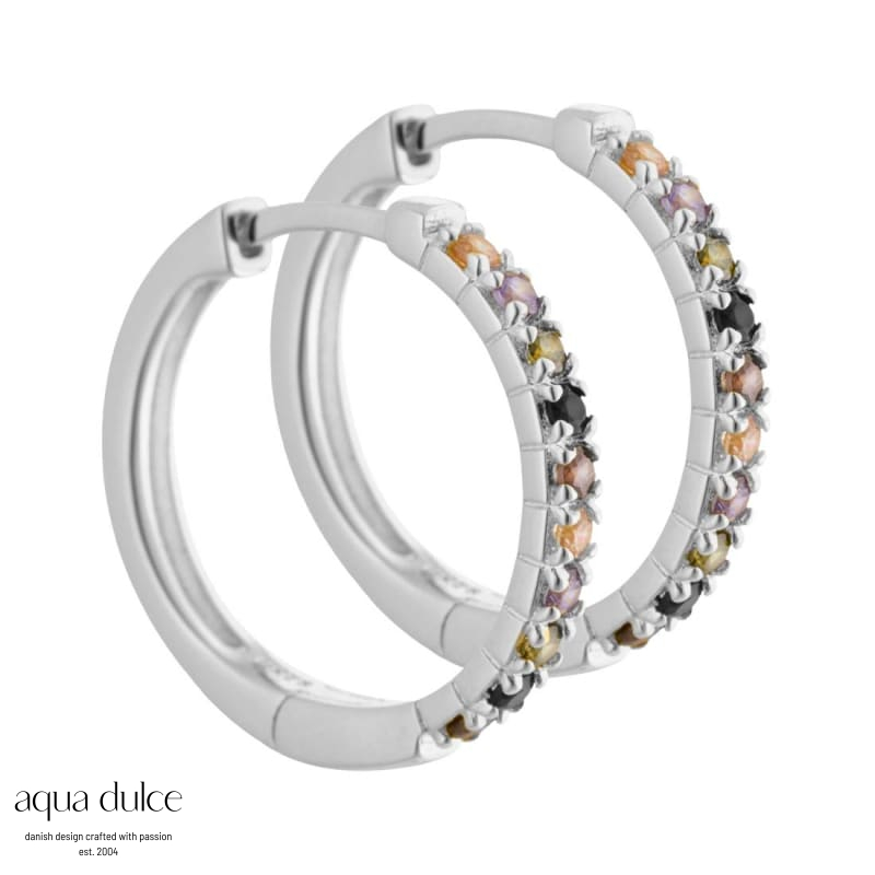 Nessa, 20 mm. creoler i sterling sølv med multifarvede zirkonia