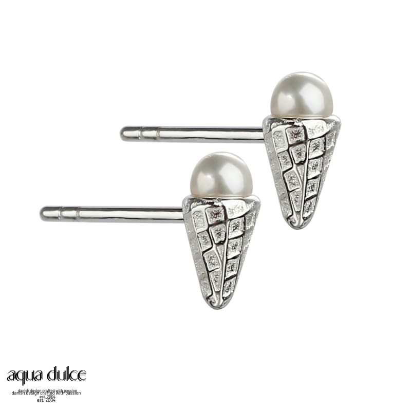 VANILLA, Ørestikker i sterling sølv med små isvafler & ferskvandsperler.