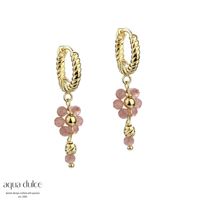 Halskæde med rosa halvædelsten blomst & små sølvkugler.