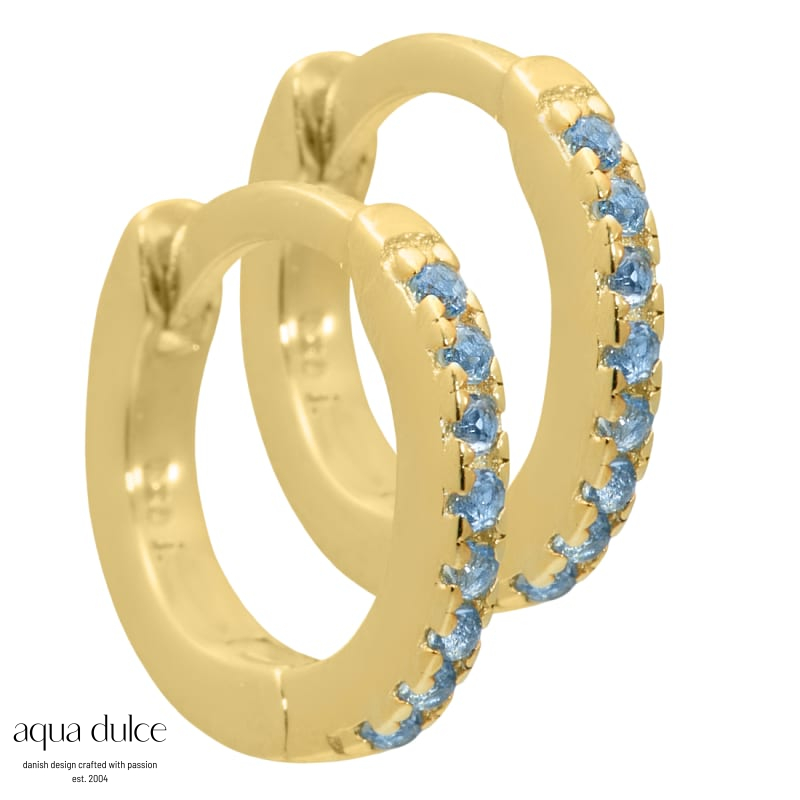 Vigga - 10,7 mm. creoler i forgyldt sterling sølv med lilla, røg, sorte, champagne & oliven zirko Aqua Dulce 4341 10,7 mm. På lager 299,00 DKK Vis produkt