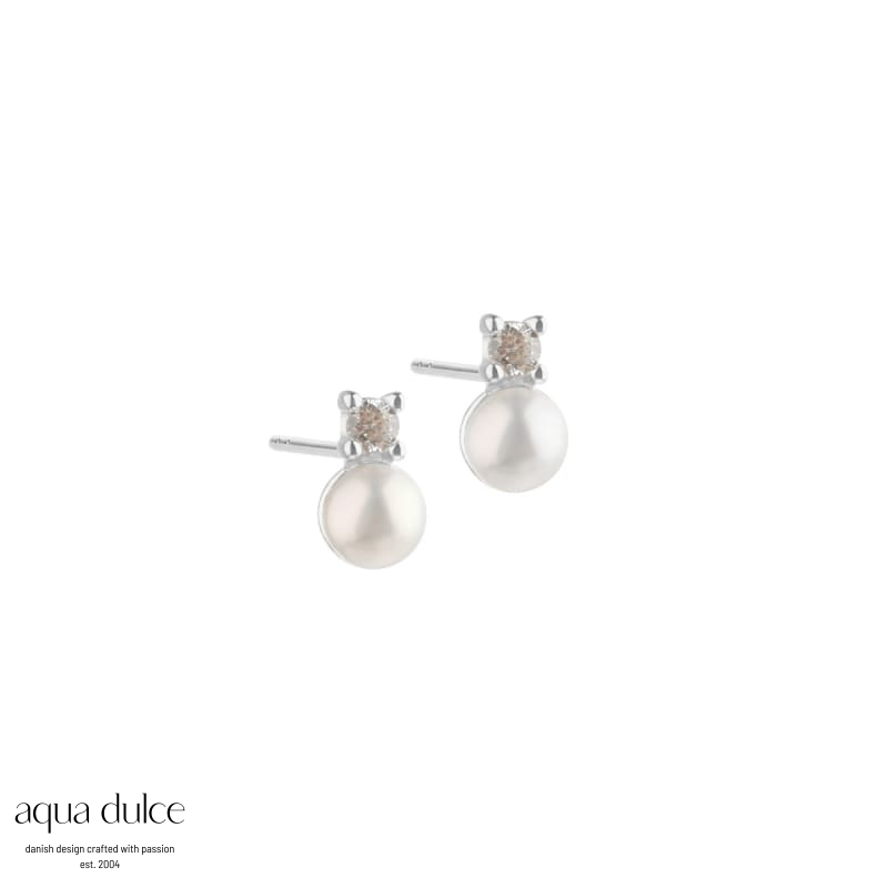 Ørestikker med 4 mm. ferskvandsperler & klare zirkonia.