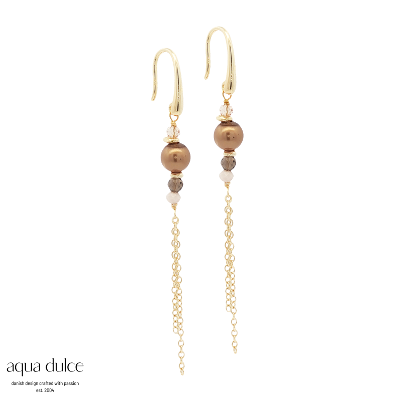 EARRING WITH BROWN SHELL PEARL AND SUNSTONE, GOLD PLATED STERLIG SILVER