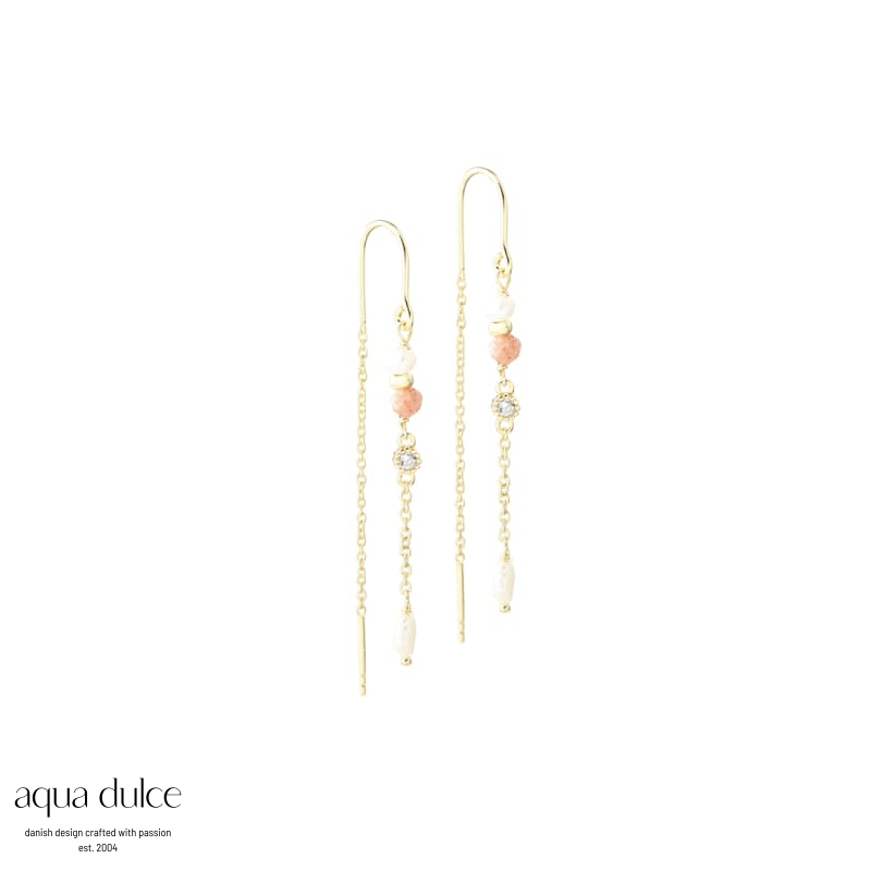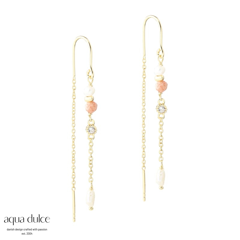43 + 3 CM. SUNSTONE, FRESH WATER PEARLS & ZIRKONIA. / 925 STERLING SILVER GOLDPLATED 14 K.