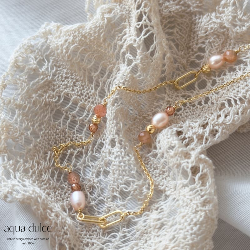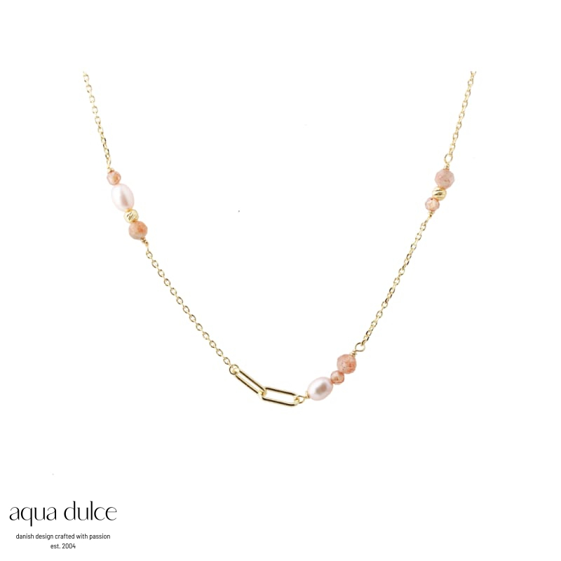 4,5 CM. SUNSTONE & FRESH WATER PEARLS / 925 STERLING SILVER GOLDPLATED 14 K.