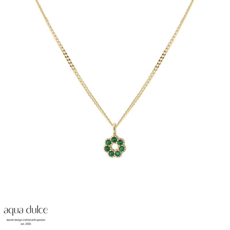 42 + 4 CM. GREEN ZIRKONIA / 925 STERLING SILVER GOLDPLATED 14 K.