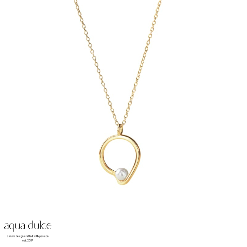 42 + 3 CM. FRESH WATER PEARLS, SUNSTONE & ZIRKONIA / 925 STERLING SILVER GOLDPLATED 14 K.