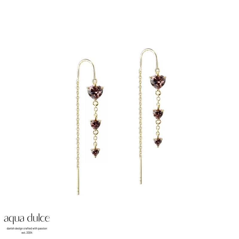 6,4,& 3 MM. BROWN ZIRKONIA HEARTS , GOLD PLATED STERLING SILVER