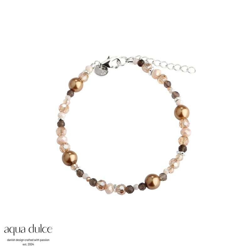 17 + 3 CM. BRACELET WITH SHELL PEARLS, SUNSTONE & CRYSTAL. STERLING SILVER