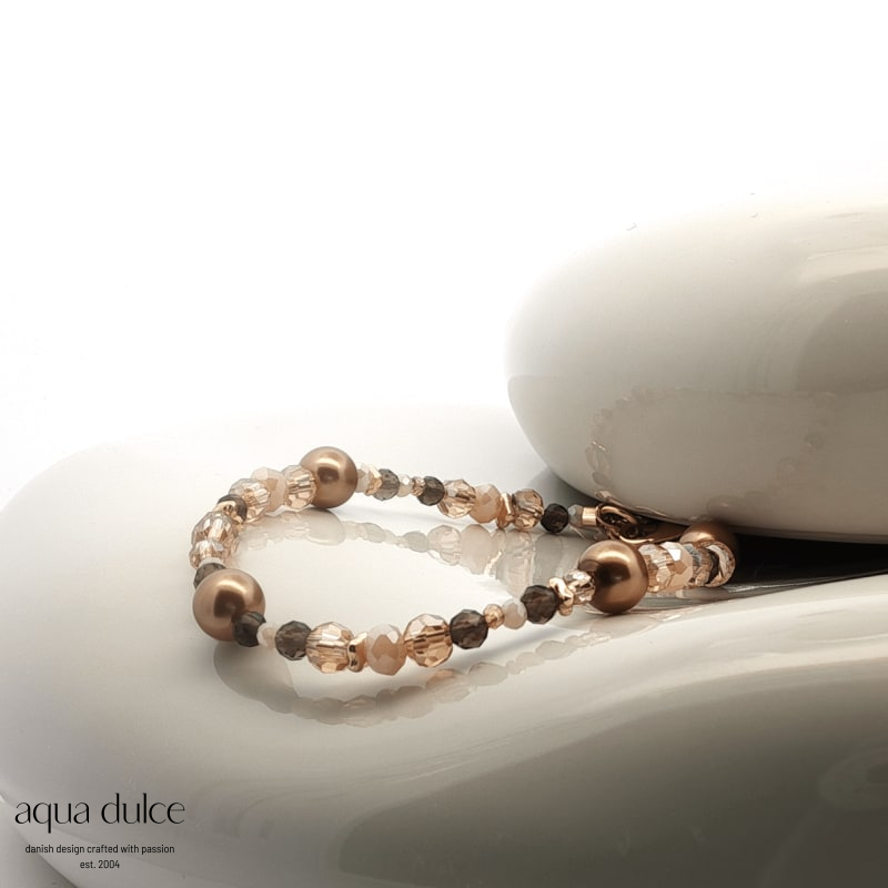 17 + 3 CM. BRACELET WITH SHELL PEARLS, SUNSTONE & CRYSTAL. GOLD PLATED STERLING SILVER