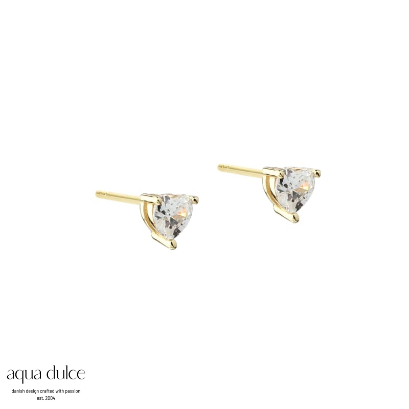 4 MM. HEARTS IN CLEAR ZIRKONIA, GOLD PLATED STERLING SILVER