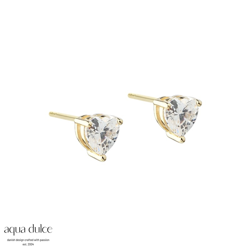 6 MM. HEARTS IN CLEAR ZIRKONIA, GOLD PLATED STERLING SILVER