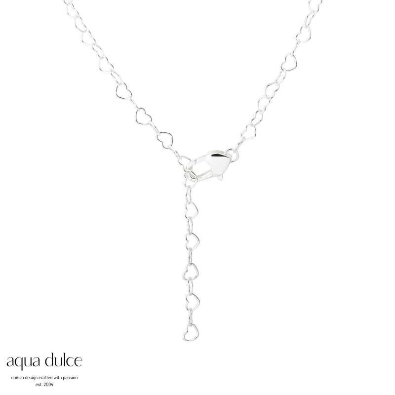 65 CM. HEART CHAIN AND HEART LOCK, STERLING SILVER