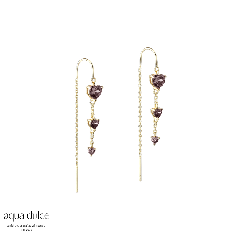 6,4,& 3 MM. BROWN ZIRKONIA HEARTS , GOLD PLATED STERLING SILVER