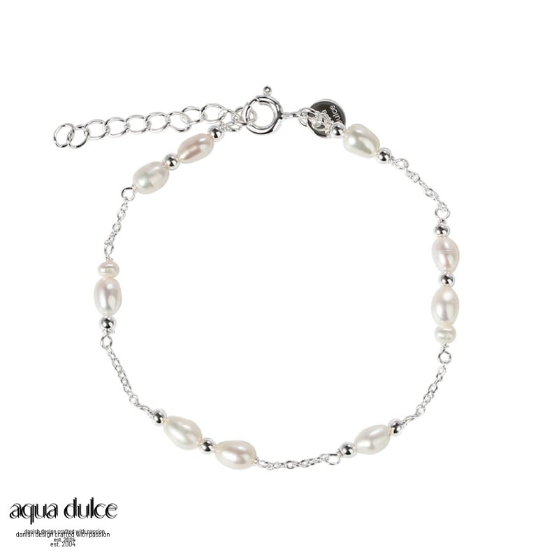 Armbånd med flotte ovale ferskvandsperler & små kugler.