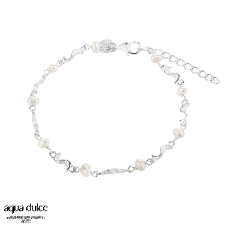 Armbånd med rhumba vedhæng og hvide ferskvandsperler.