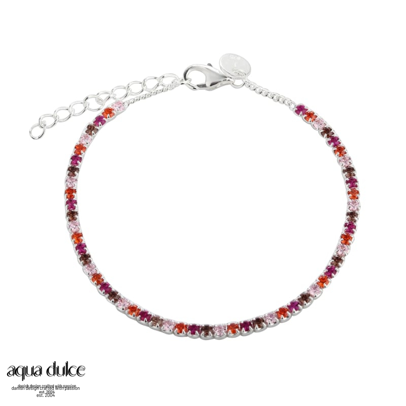 Armbånd med pink, smokey, orange & rosa zirkonia.