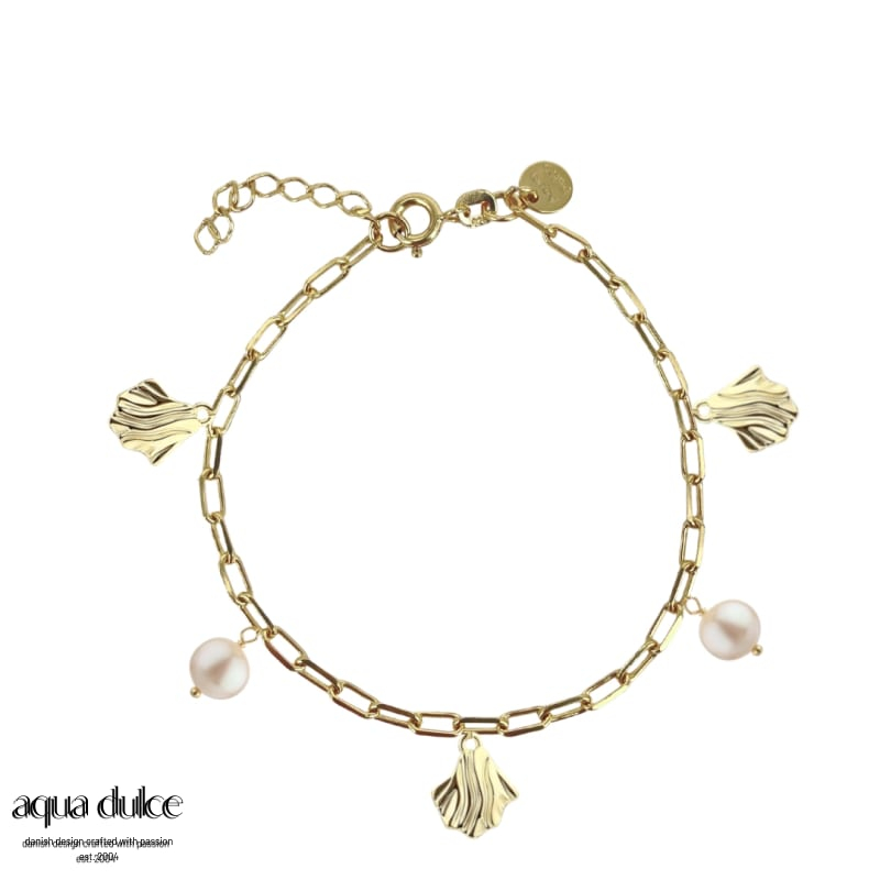 Armbånd med bølgende vedhæng og 5 mm. hvide ferskvandsperler.