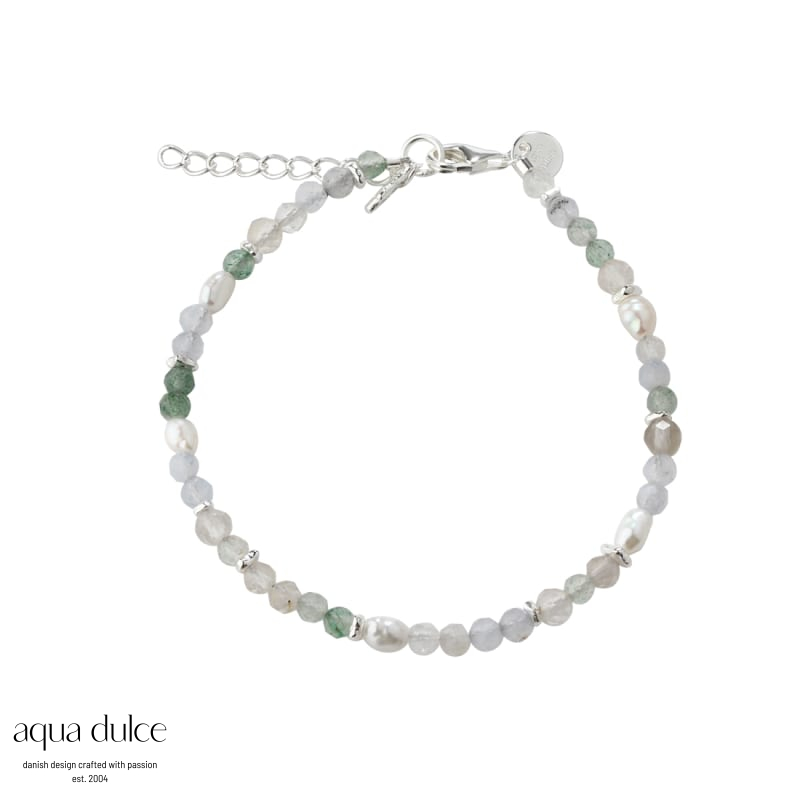 17 + 3 CM. GREEN STRAWBERRY QUARTZ. CITRINE. FRESH WATER PEARLS