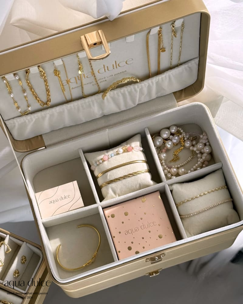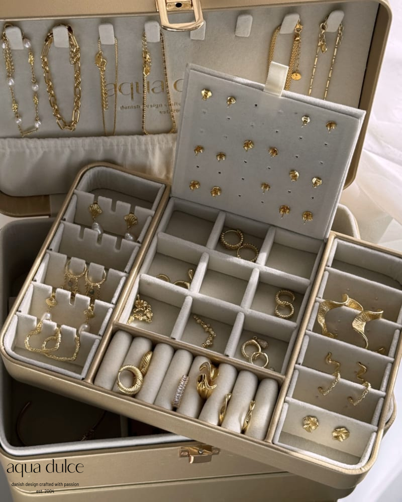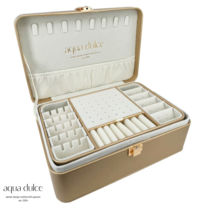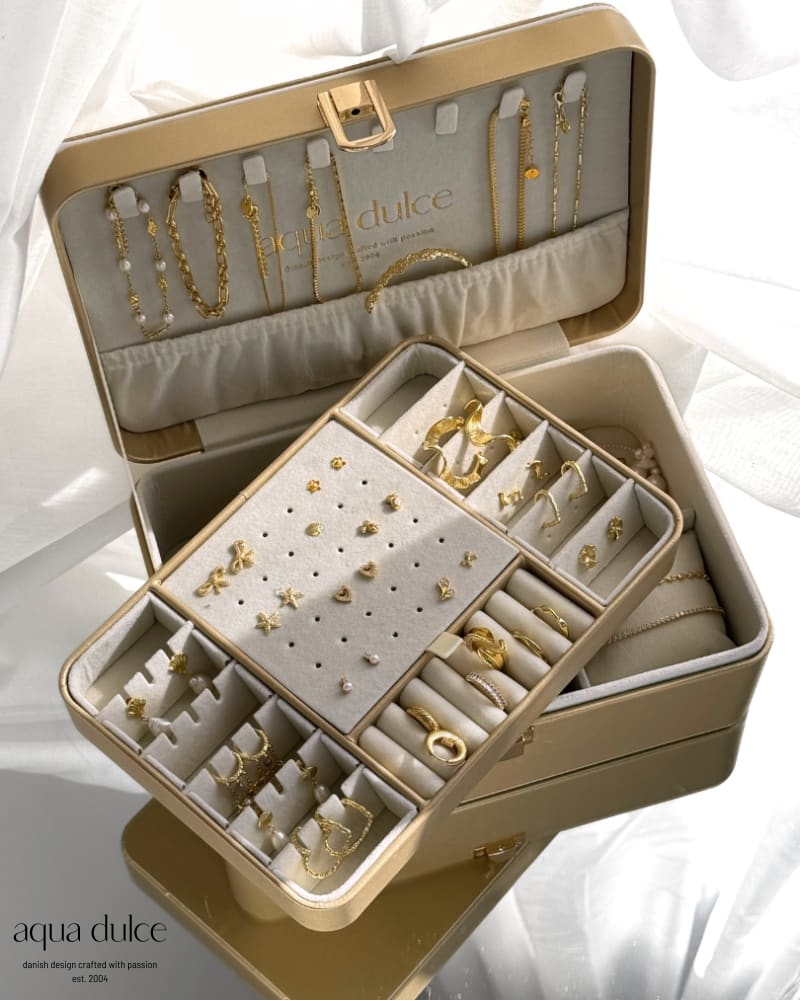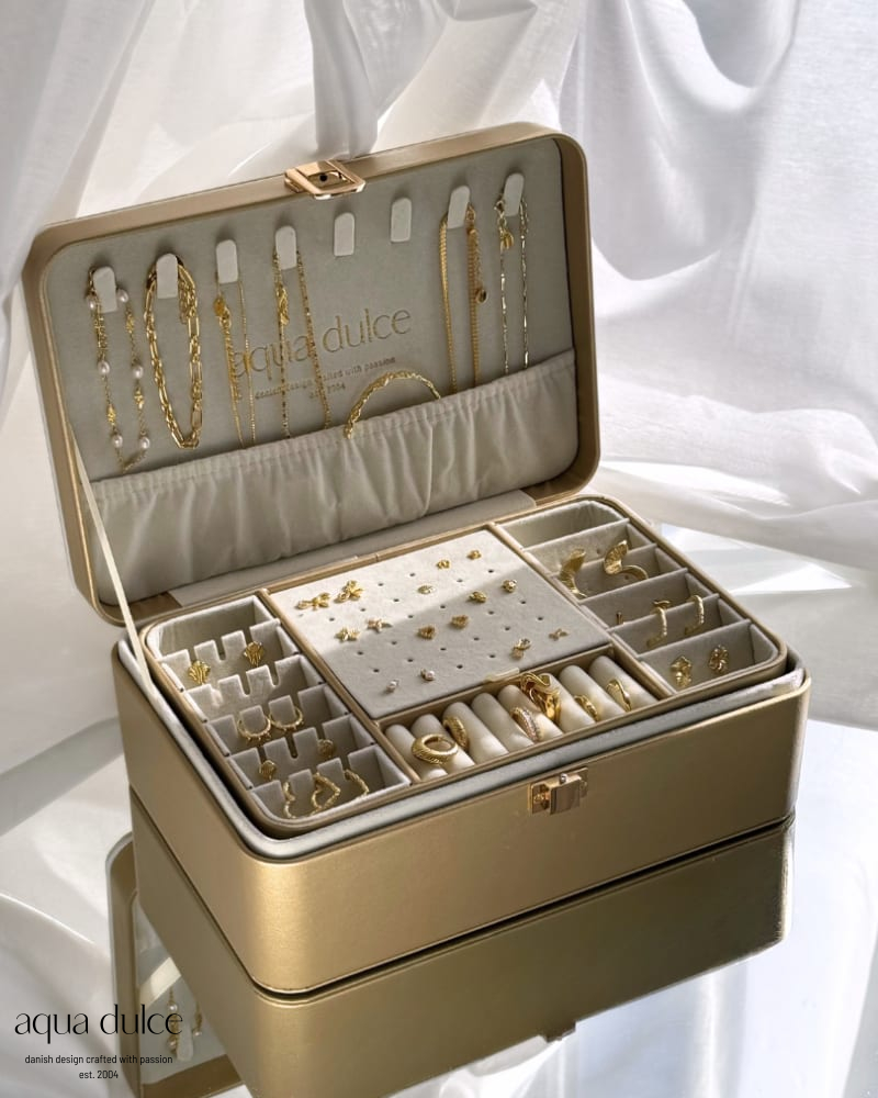 Smykkeskrin i guld kunst læder.